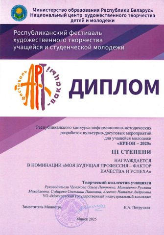 © 2026 Могилевский государственный индустриальный колледж. Сайт включен в Государственный регистр информационных ресурсов. Регистрационное свидетельство №7141000809 от 19 января 2010 года. | Graduate by Theme Palace